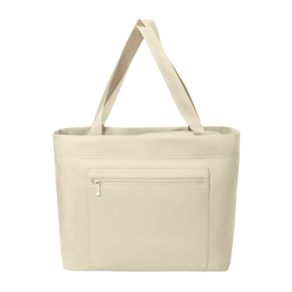 Durable yet pliable, each Claremont bag is made to meet the many needs of the hybrid lifestyle head-on. It features sleek, modern details for an overall clean and elevated aesthetic. 65/35 polyester/cotton. Laptop compartment: 11"h x 14"w x 1.5"d; fits most 16" laptops. Dimensions: 19.5"h x 12.5"w x 6"d. Capacity: 1,098 cu. in./18 L. Weight: 1.21 lbs./0.55 kg Colors: Deep Black, River Blue Navy, Storm Grey, Warm Quartz $60 each Single / $65 Unlimited Design